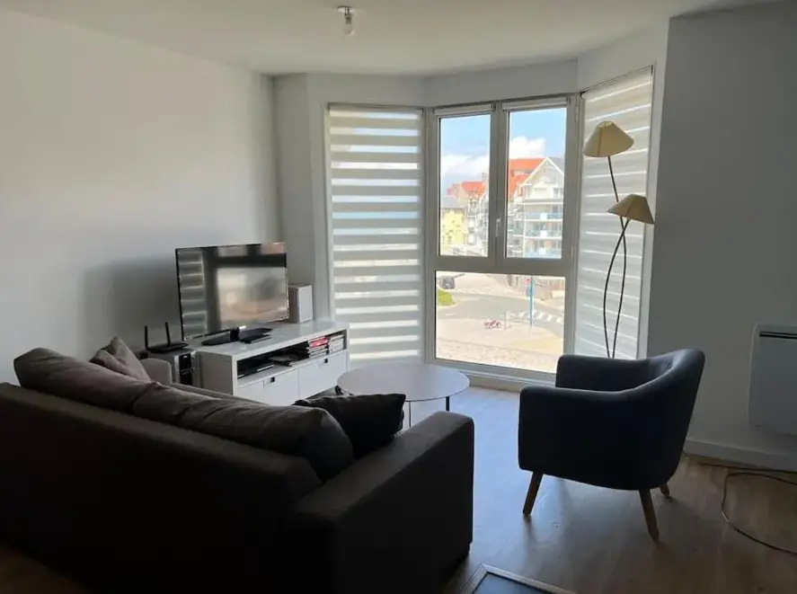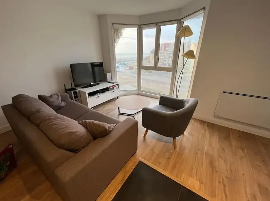 Locatie aan het strand: Bellevue - Appartement 60 m2 - 3 ch - vue mer - rénové à Wimereux Plage! in Wimereux biedt directe toegang tot het strand met een prachtig uitzicht op zee. U kunt ontspannen op het terras of balkon en genieten van het kustlandschap. Moderne voorzieningen: Het appartement beschikt over gratis WiFi, een volledig uitgeruste keuken, een wasmachine en parketvloeren. Extra voorzieningen zijn onder andere een eettafel, een slaapbank en tuinmeubilair, zodat u verzekerd bent van een comfortabel verblijf. Comfortabele accommodatie: Met drie slaapkamers en een badkamer biedt de woning plaats aan maximaal zes gasten. Familiekamers bieden voldoende ruimte, terwijl de lift en de gratis privéparkeergelegenheid op het terrein geschikt zijn voor alle reizigers. Attracties in de buurt: Het strand van Wimereux ligt op slechts een steenworp afstand en het treinstation Boulogne-sur-Mer Tintelleries ligt op 6 km afstand. Andere bezienswaardigheden zijn Cap Gris Nez (14 km) en het treinstation van Calais (32 km). Watersporten zijn mogelijk in de omgeving. Hoog gewaardeerd door gasten.